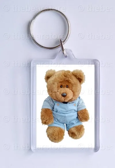 Keyring featuring Fergus in his blue and yellow striped T shirt and blue dungarees.
