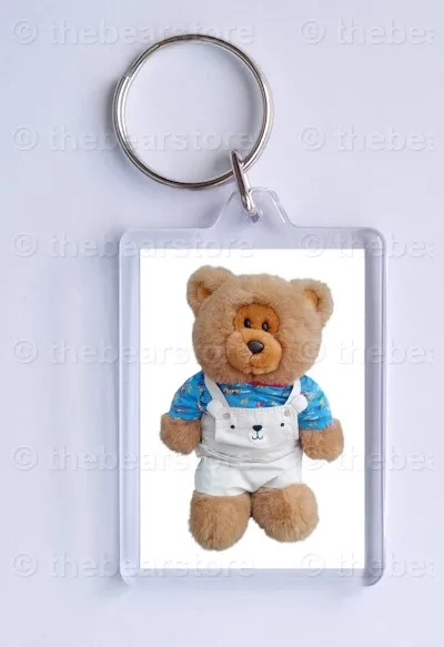 Keyring featuring Roly in his 'cars' T shirt and bear dungarees.
