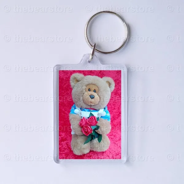 Keyring featuring Roley holding 3 red roses.