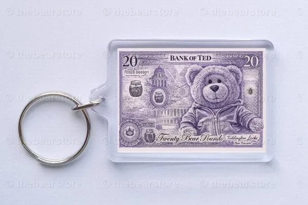 Special edition keyring featuring TEDs 20 Bear pounds note.