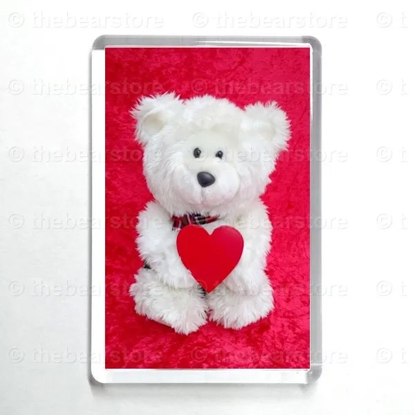 Oblong magnet featuring Hudson holding a heart.