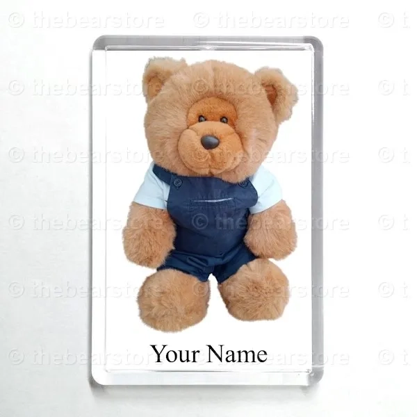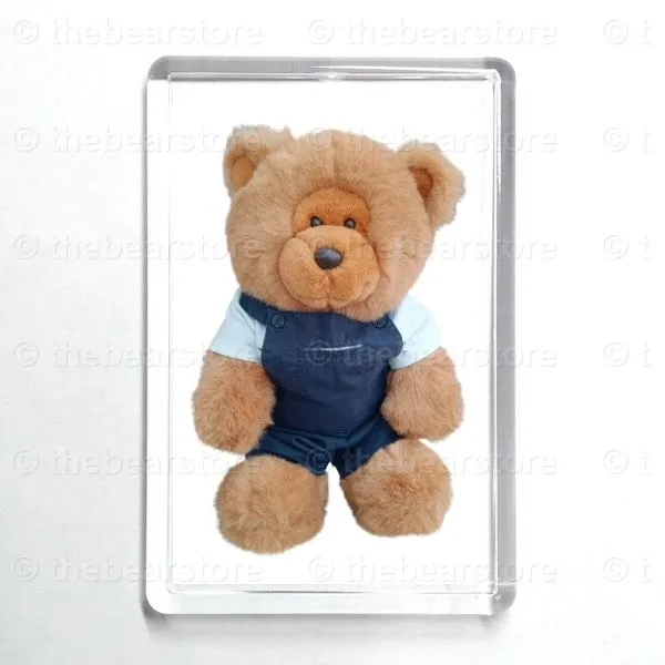 Oblong magnet featuring Lester in his 'Winnie the Pooh' T shirt and navy dungarees.
